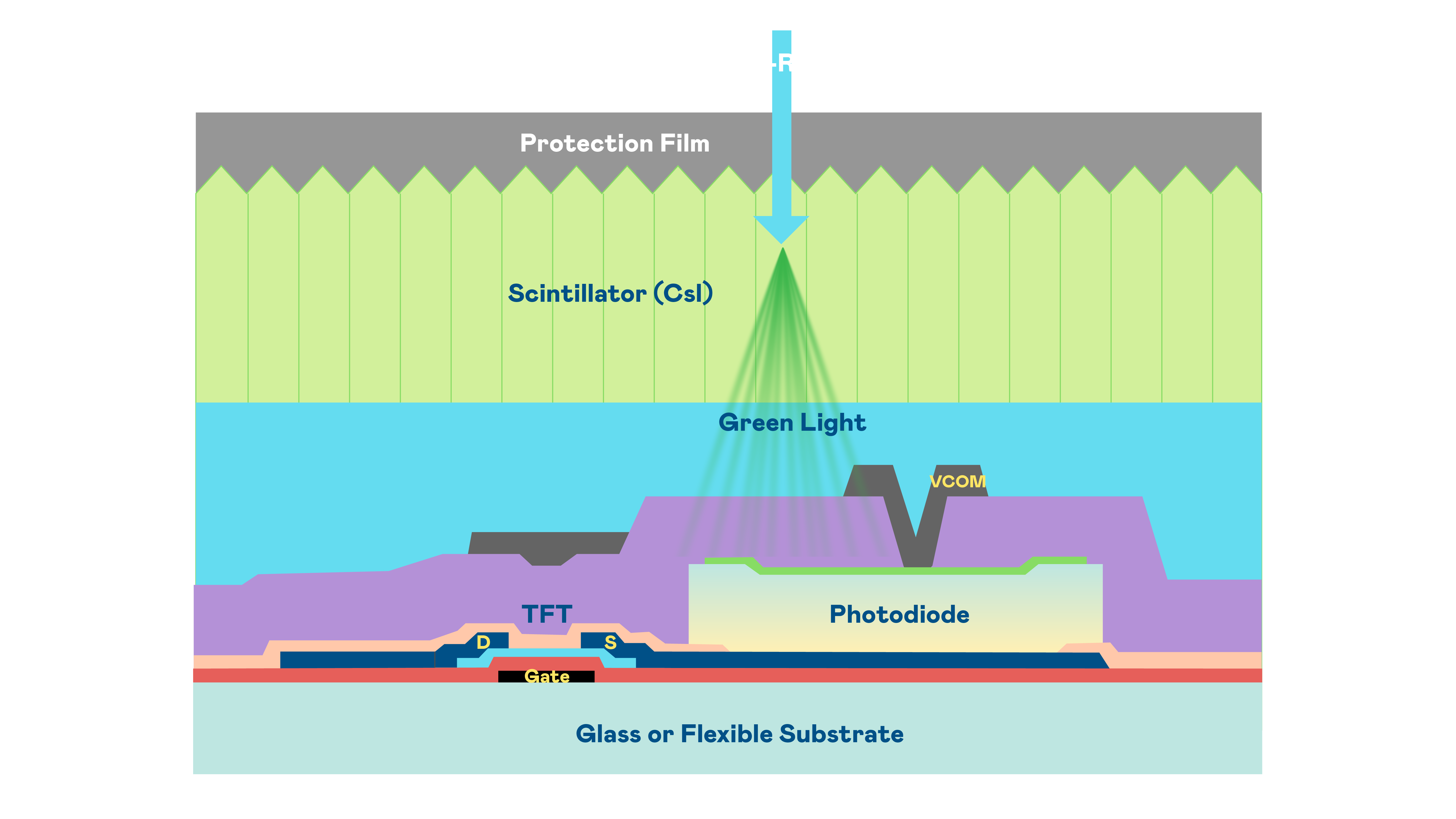 彩神Vll开发大尺寸TFT加上光电二极体 (photodiode)应用于X光影像感测,光灵敏度高的元件技术,可降低X光摄影时人体接收之辐射剂量。除了玻璃基板之外,亦可选择柔性基板,做为可携式的医疗与工业用X光影像感测器。